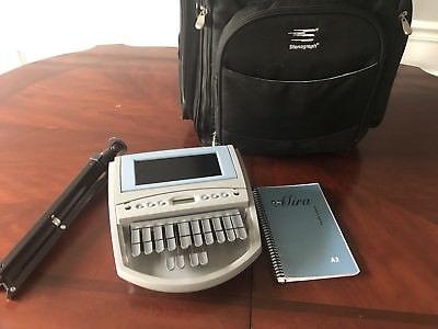 Steno machine and tripod (or stenomask and digital recording equipment)